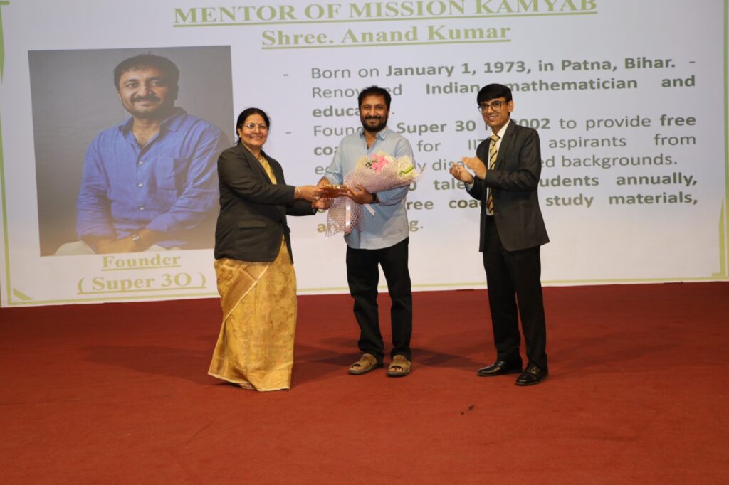Anand Kumar, Founder of Super 30, being felicitated by the Principal and the Project Head, Mission Kamyab.